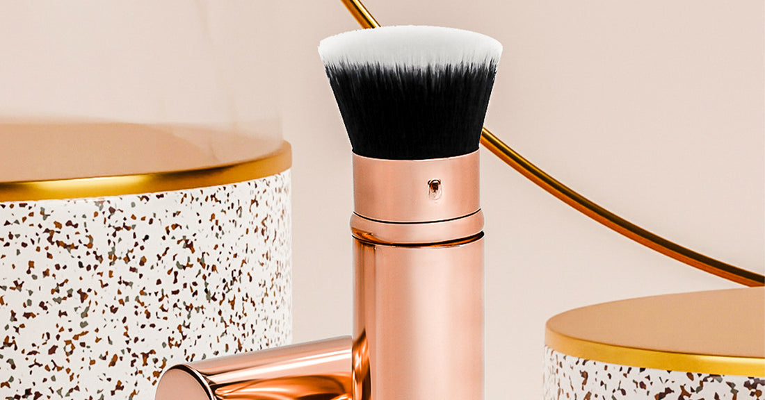 A customer favorite for applying mineral foundation is the Chloe Retractable Kabuki Brush with a flat top. Let’s break down why: